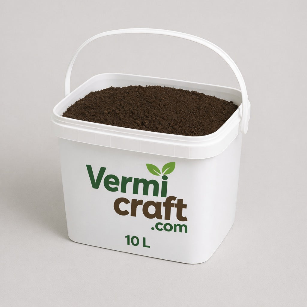 Vedro z vermikompostom 10 litrov – naravni obnovilec tal, predelan s pomočjo deževnikov.